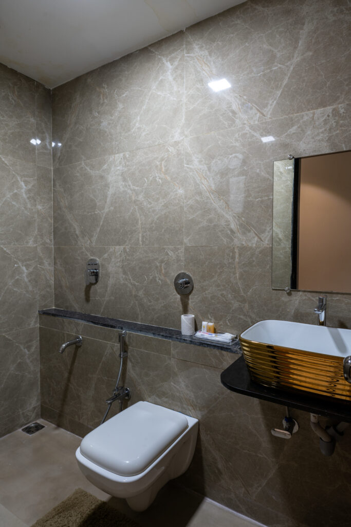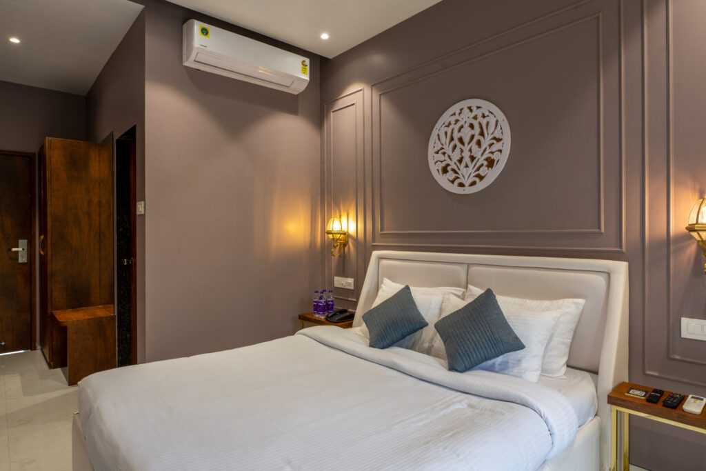Unwind in our 160 sq. ft. Executive Room that offers a perfect blend of comfort and natural charm. Located in Phase 2, this cozy retreat features a Queen bed, private balcony with soothing greenery views, Smart TV, Wi-Fi, air-conditioning, intercom, hot/cold water, shower, and premium toiletries — ideal for a refreshing and peaceful stay surrounded by nature.
