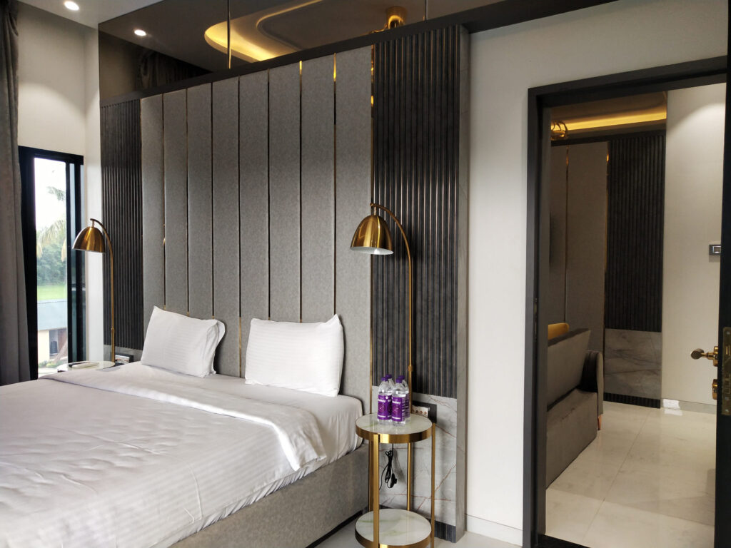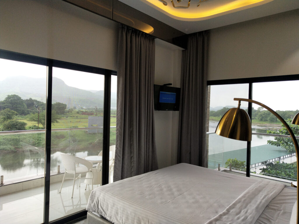 Experience luxury in our 400 sq. ft. Sunset Suite, featuring a spacious bedroom with a King bed, a separate living room, and a private balcony offering stunning views of both the river and pool. Located in Phase 2, the suite includes a Smart TV, Wi-Fi, air-conditioning, hot/cold water, shower, and premium toiletries — designed for a serene and elegant escape.